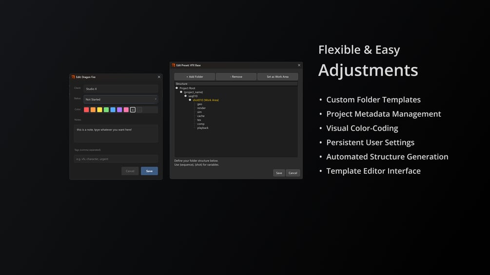 - Custom Templates – Create and reuse folder structures for VFX, Games, or personal projects.
